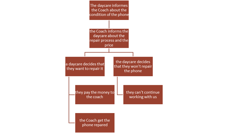 Phones can break in different ways. It is important to distinguish whether the phone is still functional. If only the glass or cover is broken but the phone remains usable the daycare is required to cover the repair costs.