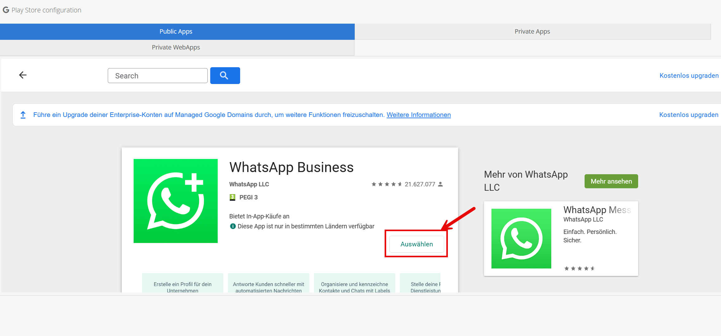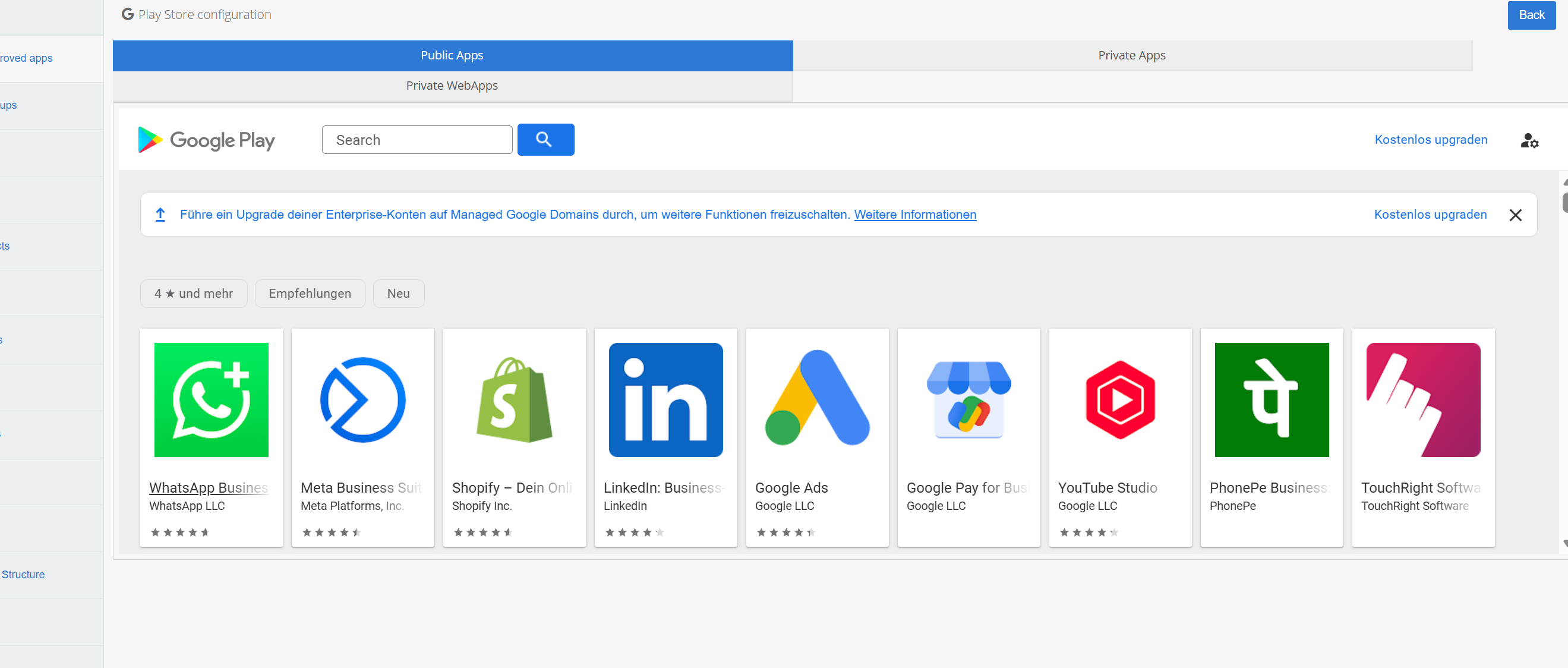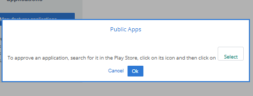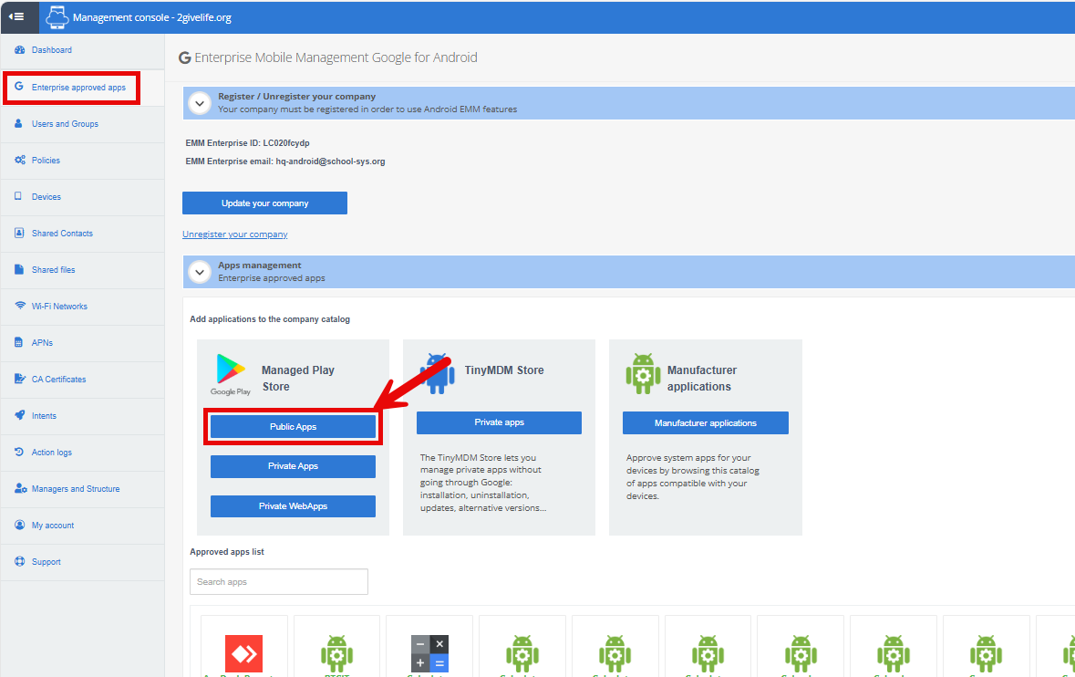 1. Open TinyMDM go to Enterprive approved Apps and click on Public apps