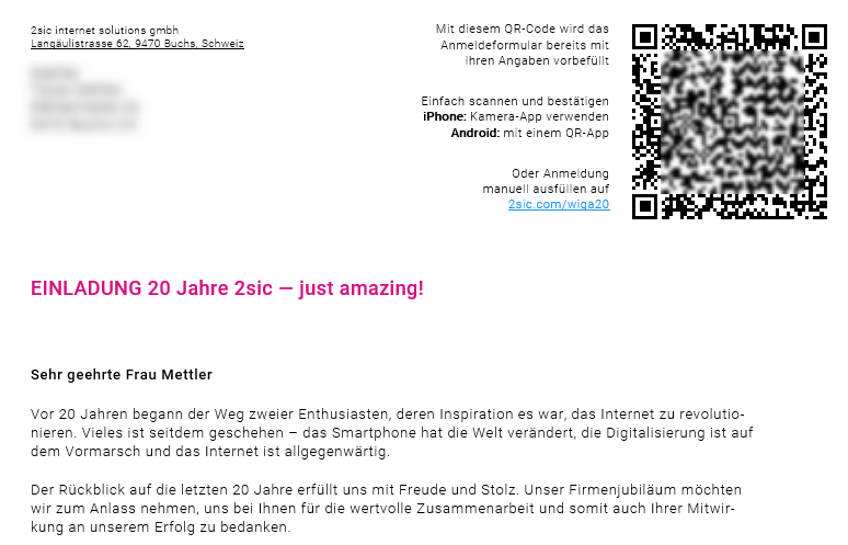 Einladungen mit Schnell-Anmeldung per QR-Code sind kundenfreundlich und sehr effektiv.