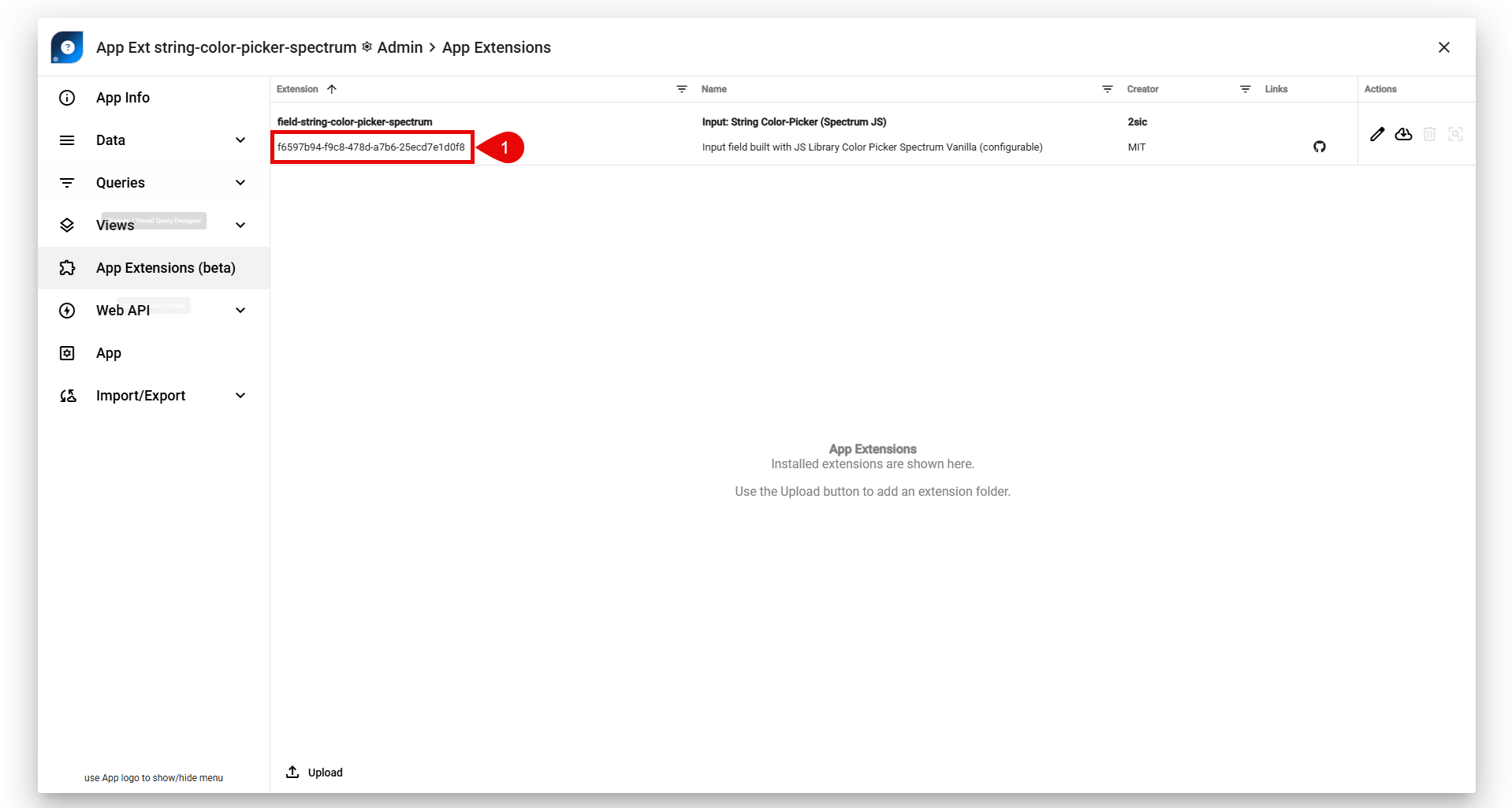1. The App Guid is the Guid from the Extension itself